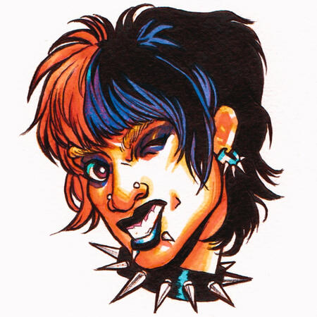 Frankie Stevo is a comic artist based in the northern suburbs of Boorloo (Perth). They have a lifelong interest in representing themselves with characters, whether that be by writing about them, or drawing them, or both at the same time. In 2022, they graduated from Curtin University with a Bachelor of Arts, majoring in Creative Writing and minoring in Illustration. They have always been inspired by rock music, and nowadays, enjoy creating stories under a DIY punk ethos, using traditional media to illustrate them. When not working on a comic, Frankie can be found at op shops, record stores, concerts, roller derby training, home working on a DIY fashion project, or their day-to-day job at a school library.